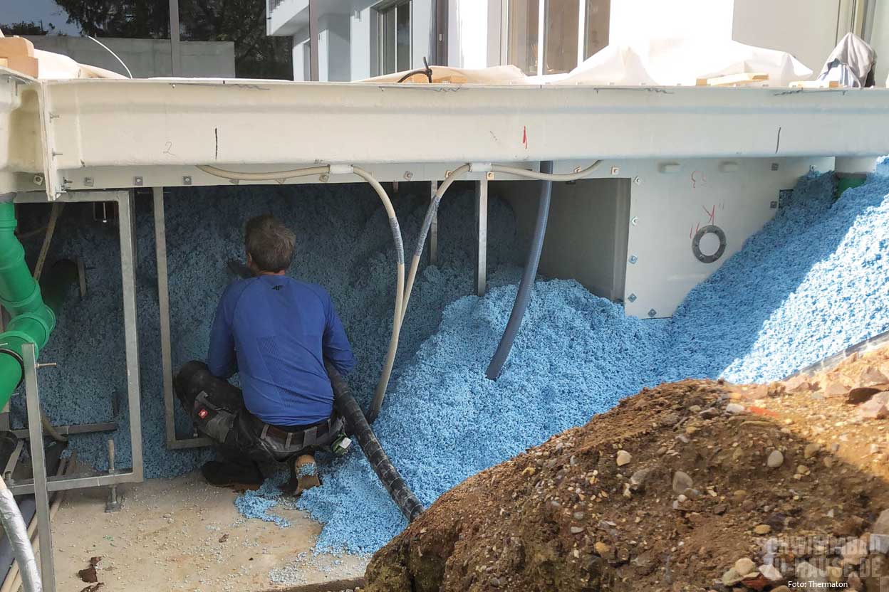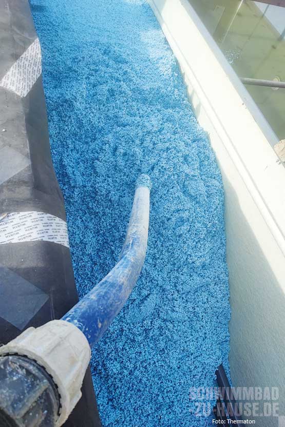 Thermaton ist ein effizienter Allround-Dämmstoff, der sich aus recycelten Materialien zusammensetzt und bei Bedarf wiederverwendet werden kann. Seine Entwicklung steht exemplarisch für die Innovationskraft und das Umweltbewusstsein von Berger Beton. Das Material wird vor Ort angemischt und direkt an den Einbauort gepumpt, wodurch es sich ideal an die Gegebenheiten anpassen lässt. Dies macht es zu einer perfekten Lösung für die Verfüllung von Fertigschwimmbecken und die Optimierung der Energiebilanz von Pools.