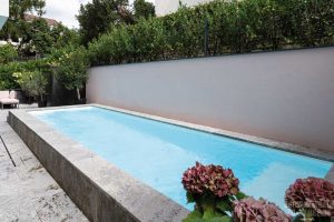 ine nicht ganz alltägliche Vorgeschichte: Im Unterschied zu den üblichen Poolbau-Vorhaben hatte es John Isaak, Projektleiter bei SSF Pools by Klafs, hier mit einem luxuriösen Mehrfamilienhaus mit circa zehn Wohneinheiten zu tun. Das Ehepaar, das mit seinen drei Kindern das Erdgeschoss bewohnt, wünschte sich einen Garten mit Pool. Dabei waren zwei Hindernisse zu überwinden: Zum einen musste die Familie die anderen Mitbewohner überzeugen, die Freifläche aus dem Gemeinschaftseigentum an sie abzutreten. Zum anderen stieg auf der Nordseite der Hang steil an, sodass größere Erd- und Abstützarbeiten erforderlich waren, um den Pool realisieren zu können. Nachdem alle Hausbewohner zugestimmt hatten,