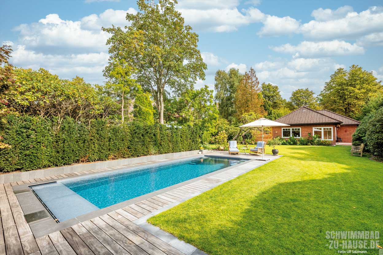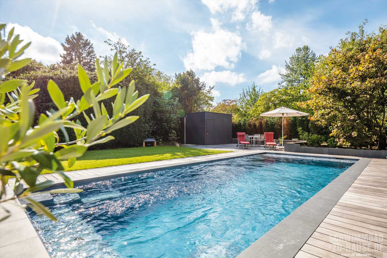 Ein Pool im Garten ist eine feine Sache: Man muss keine weiten Wege zum nächsten Freibad zurücklegen, um eine Runde zu schwimmen. Ein paar Schritte über den Rasen genügen. Wer ein eigenes Schwimmbecken besitzt, kann auch mal spontan eine Runde im Wasser drehen, wenn ihm oder ihr gerade danach ist. Renate Kruse schätzt diese Flexibilität sehr: „Wenn ich im Becken meine Bahnen ziehe, ist das für mich wie ein Kurzurlaub.“