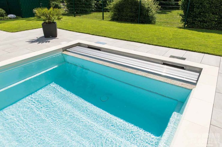 Zunächst sollte man sich fragen: Wie viel möchte ich selbst bei der Wasserpflege Hand anlegen? Habe ich Lust und Zeit, die Wasserqualität permanent selbst zu überprüfen? Je nachdem, wie die Antwort ausfällt, so umfangreich sollte die Pooltechnik sein. Es ist immens wichtig, einen Schwimmbadbauer mit Erfahrung zu finden. Man sollte sich unbedingt selbst mit der Thematik Schwimmbad auseinandersetzen und sich Kenntnisse aneignen, bevor es mit Planung und Umsetzung des Projekt losgeht. Eine Abdeckung in Form eines Rollladens ist unerlässlich, er speichert die Wärme im Pool. Solarrollladenabdeckungen heizen das Wasser sogar auf.