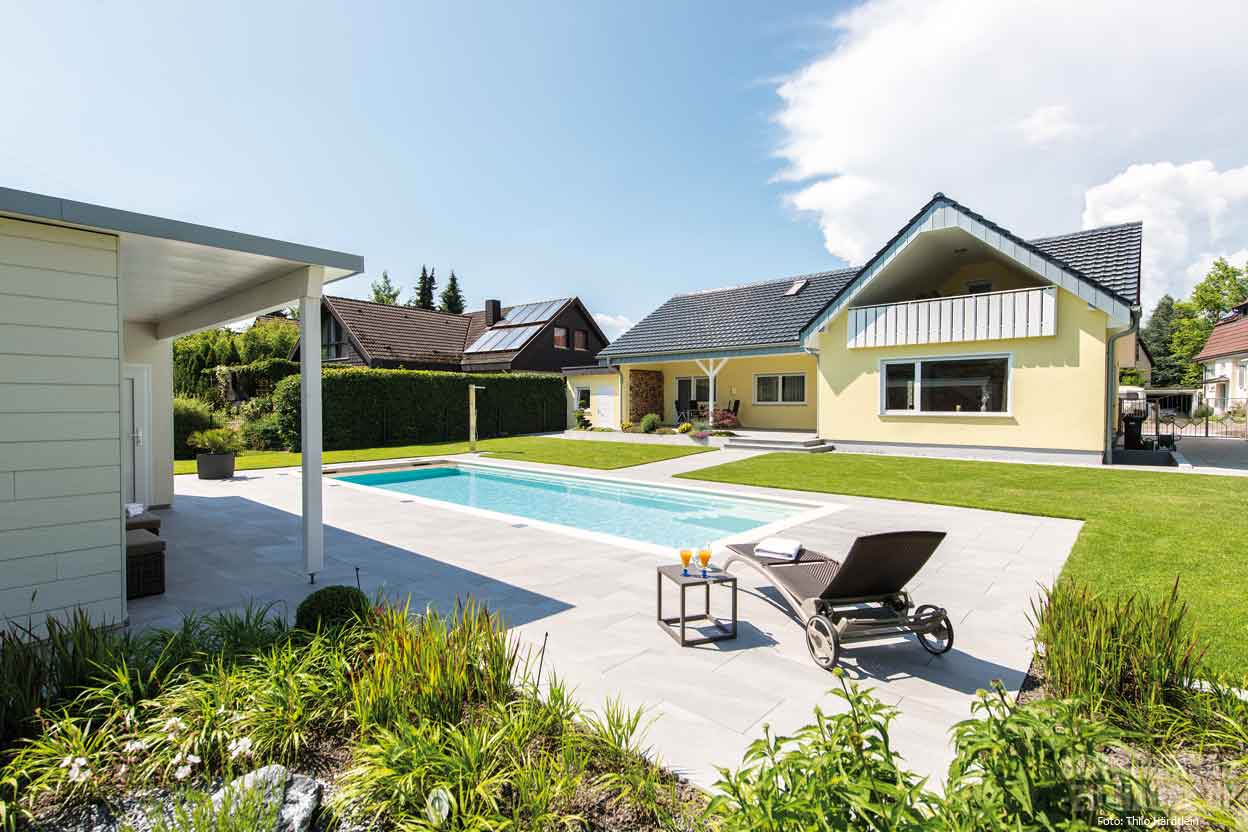 Durch Zufall sind wir vor einigen Jahren auf das Fachmagazin haus und wellness* gestoßen und haben mit großer Freude festgestellt, dass es eine Fangemeinde für Pools und somit ein beratendes Medium mit vielen beeindruckenden Besipielen für diesen Themenbereich in Deutschland gibt. Wir haben das Magazin sofort abonniert und weiter geträumt … Mit dem fleißigen Abbezahlen des Eigenheims entwickelte sich der Traum dann langsam zum realen Wunsch. Dank haus und wellness* haben wir die unterschiedlichsten Möglichkeiten des Poolbaus kennengelernt und mit dieser Unterstützung unsere eigene Vorstellung konkretisiert. Fragen wie „Was gefällt uns?“, „Was wäre umsetzbar?“ wurden Stück für Stück beantwortet.