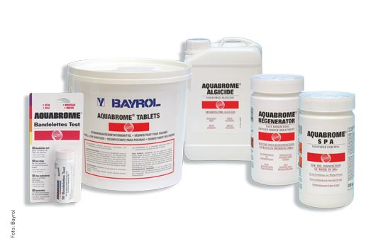 Eine weitere Alternative zum Einsatz von Chlor ist desinfizierendes Brom. Brom ist – wie Chlor – ein Halo­gen. Wenn sich Brom und organische Verunreini­gun­­gen verbinden, entstehen sogenannte Bromamine, die allerdings nicht den von manchen als störend empfundenen Chlor­ge­ruch, hervorgerufen durch gebundenes Chlor (Chlor­ami­ne), aufweisen. Brom wirkt zuverlässig gegen Bakterien, Viren und Pilze und beseitigt organische Ver­schmutzungen durch Oxidation. Durch eine höhere pH-Wert-Toleranz bietet Brom auch bei einem erhöhten pH-Wert noch sehr gute Desinfektionssicherheit. Es ist daher neben der Desinfek­tion von Schwimmbad-Badewasser auch für Whirl­pools besonders gut ge­eignet.