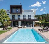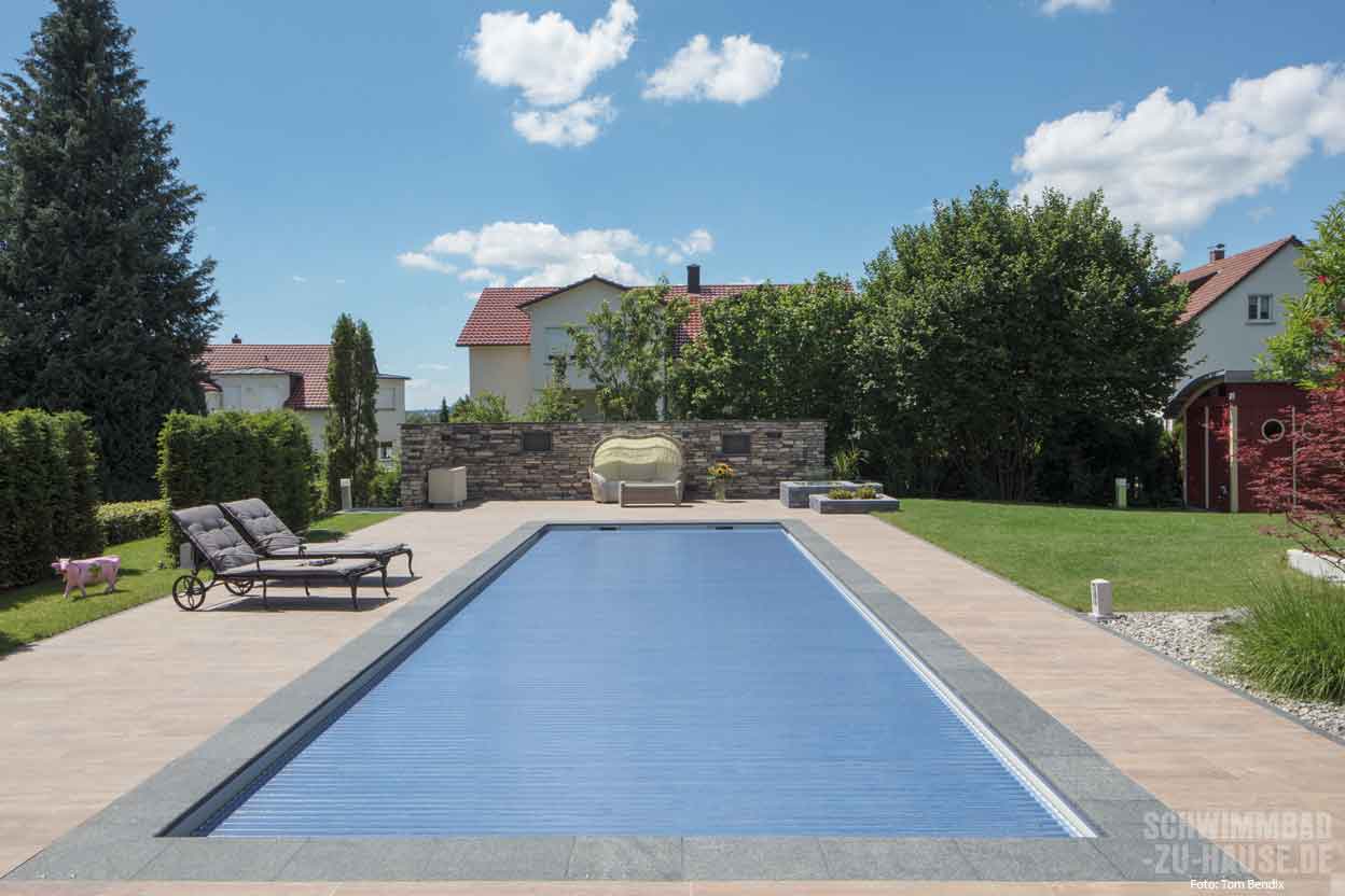 Hat man eine große Familie, so spielt sich ein Hauptteil des Lebens in den sommerlichen Monaten des Jahres draußen im Garten ab. Besonders, wenn die Kinder jung und voller Energie sind, stehen Outdooraktivitäten wie Ballspiele, Gartenpicknicks und Co. ganz oben auf der Wunschliste der Kleinen. Ähnlich sah es im Fall dieser Bauherren aus Oberschwaben aus. Um den Freizeitwert für Jung und Alt zu steigern, entschied sich das Ehepaar für ein eigenes, ganz privates Schwimmbad im Freien. „Die Kinder sind leidenschaftliche Wasserratten und auch wir ziehen gerne unsere Bahnen im Wasser“, begründet der Bauherr die Entscheidung.