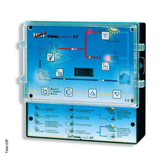 Mit dieser Mikroprozessorsteuerung hat man neben dem Schwimmbad auch die Solaranlage im Griff – auf Tastendruck kann die Solarkollektortemperatur abgerufen werden. Durch den Anschluss eines Solartemperaturfühlers wird die Solarregelung automatisch aktiviert.