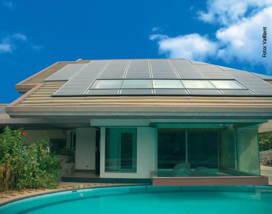 Wer ein Schwimmbad sein eigen nennt, kann ihn nahezu kostenlos beheizen lassen – von der Sonne. Mithilfe von Solarkollektoren lassen sich ihre wärmenden Strahlen einfangen. Während das Wasser durch die Solarabsorber auf dem Hausdach fliesst, wird es von der Sonne erwärmt.