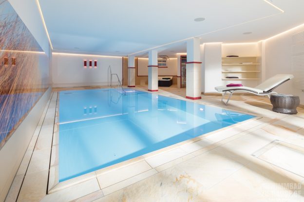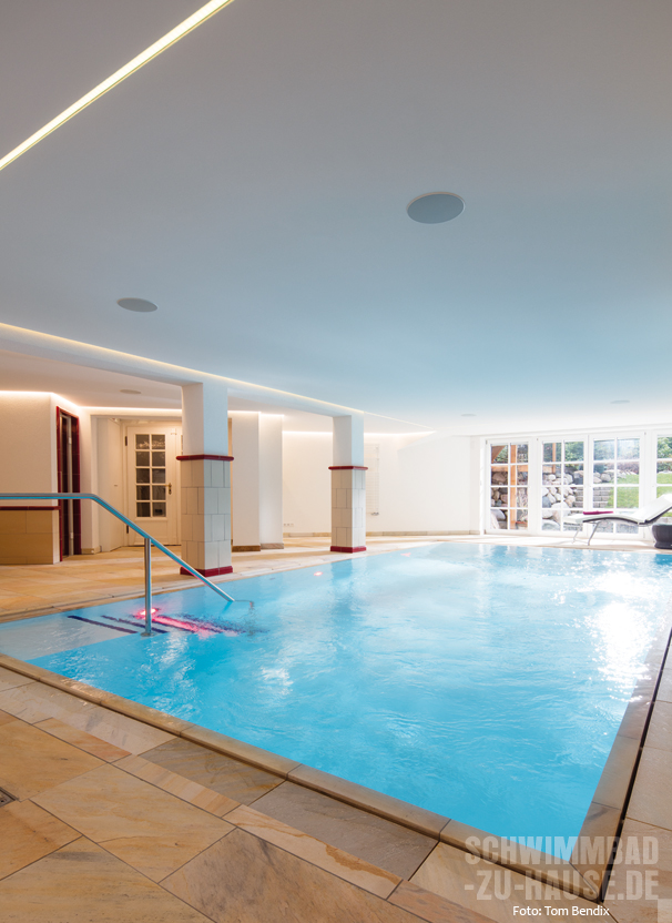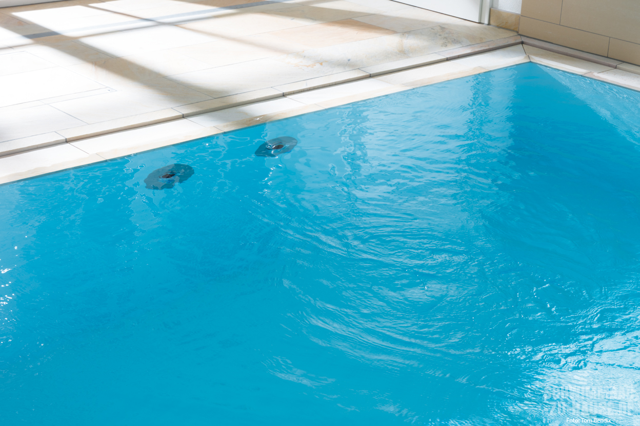 Hinter dem Vorhang, der nun perfekt sanierten Halle, sorgt eine Klimaanlage von Air Motion mit Wärmerückgewinnung für angenehme Luft und die automatisierte Wasseraufbereitung mit Sandfilter und Aktivkohle kann jederzeit bequem über die Ospa „BlueControl“-Steuerung bedient werden. Der Komfortaspekt wird zusätzlich dadurch erhöht, dass der automatische Beckensauger den zeitlichen Aufwand für Wasserpflege auf ein Minimum reduziert. Da auch alle weiteren smarten Komponenten, wie die Sonos-Anlage und der Gira-Homeserver, vernetzt sind, lassen sich alle schlauen Elemente über einen Touch-PC zentral steuern und machen die sanierte Halle zu einer smarten Wellnessinsel.