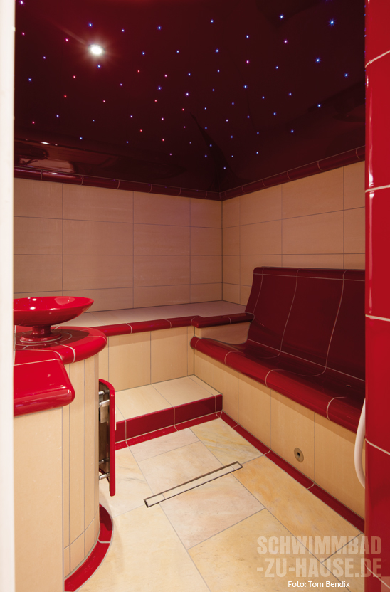 Neben den technischen Herausforderungen, die dieser Umbau mit sich brachte, kam es auch darauf an, die ästhetischen Vorgaben der Bauherrn zu erfüllen. „Als passionierte Sylt-Urlauber wollten wir dieses ganz spezielle Urlaubsgefühl einer Insel mit nach Hause nehmen“, erzählt uns die Bauherrin. Dementsprechend wurde auch die räumliche Gestaltung der Entspannungswelt geplant. Die einzelnen Bereiche wurden durch Motivbilder räumlich getrennt und in kleine Inseln verwandelt.