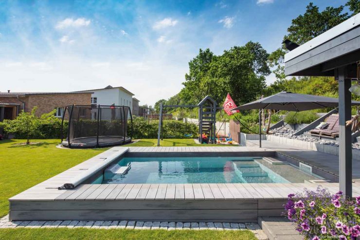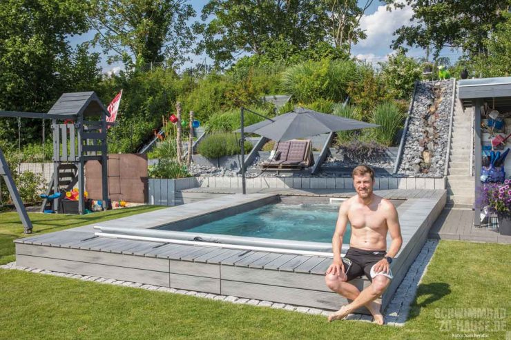 Auf die Frage nach den Gründen der Anschaffung des Pools antwortete der Familienvater: „Zum einen wünschte ich mir als ambitionierter Triathlet einen anspruchsvollen Ort zum Trainieren – ganz nach dem Motto: Fit im eigenen Garten. Vor allem das Schwimmtraining ist in der Regel mit einem besonders großen Aufwand verbunden, da man zum öffentlichen Bad fahren muss, in der Umkleidekabine Zeit benötigt und auch danach nicht in Ruhe entspannen kann. Zudem sollten auch die Kids einen Nutzen vom Becken haben. Die beiden sind drei und fünf Jahre alt und haben mit der Anschaffung eines eigenen Pools jetzt die Möglichkeit, das Schwimmen zu Hause und unter Aufsicht spielerisch zu erlernen. Gerade für die heißen Monate im Sommer wünschten wir schließlich eine Erfrischungsoase mit sauberem, kühlendem Wasser. So kann man in der freien Zeit Privatsphäre in Ruhe genießen – und es fühlt sich wie Urlaub zu Hause an.“