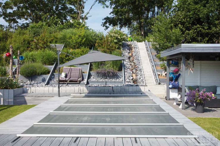 Als Bauingenieur und Leiter eines Wasserbaulabors ließ der Bauherr aus Lübeck im vergangenen Jahr sein Fachwissen in die Realisation eines eigenen Schwimmbad-Projekts einfließen. Das Ziel: als ambitionierter Triathlet im heimischen Garten trainieren. Daher bildet eine leistungsstarke Gegenstromanlage nun den Mittelpunkt des optisch modernen Beckens.