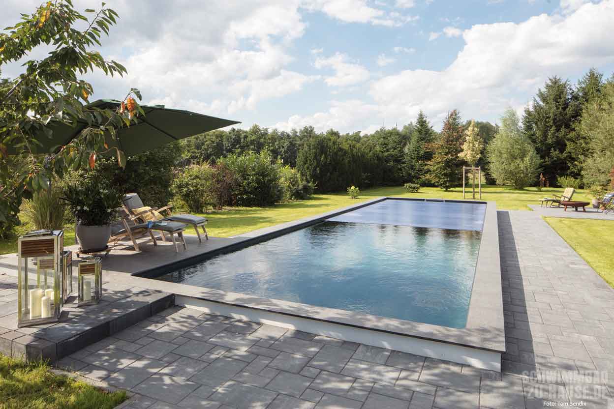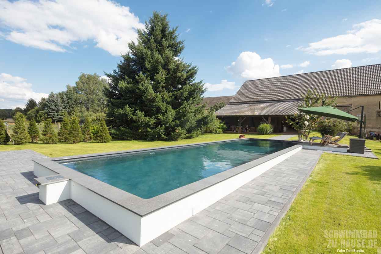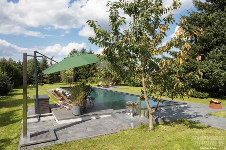 Das Grundstück dieser Bauherren aus Brandenburg ist weitläufig und strahlt in jedem Winkel absolute Ruhe aus. Eine großzügige Poolanlage sollte diese natürliche Idylle zusätzlich aufwerten. Wichtig war hierbei, dass sich das Schwimmbad optisch dezent einfügt und dennoch ein weiteres ästhetisches Highlight im Garten setzt. Gelungen ist dies dank eines Schwimmbadprofis, der neben Erfahrung viel Fingerspitzengefühl bewiesen hat.