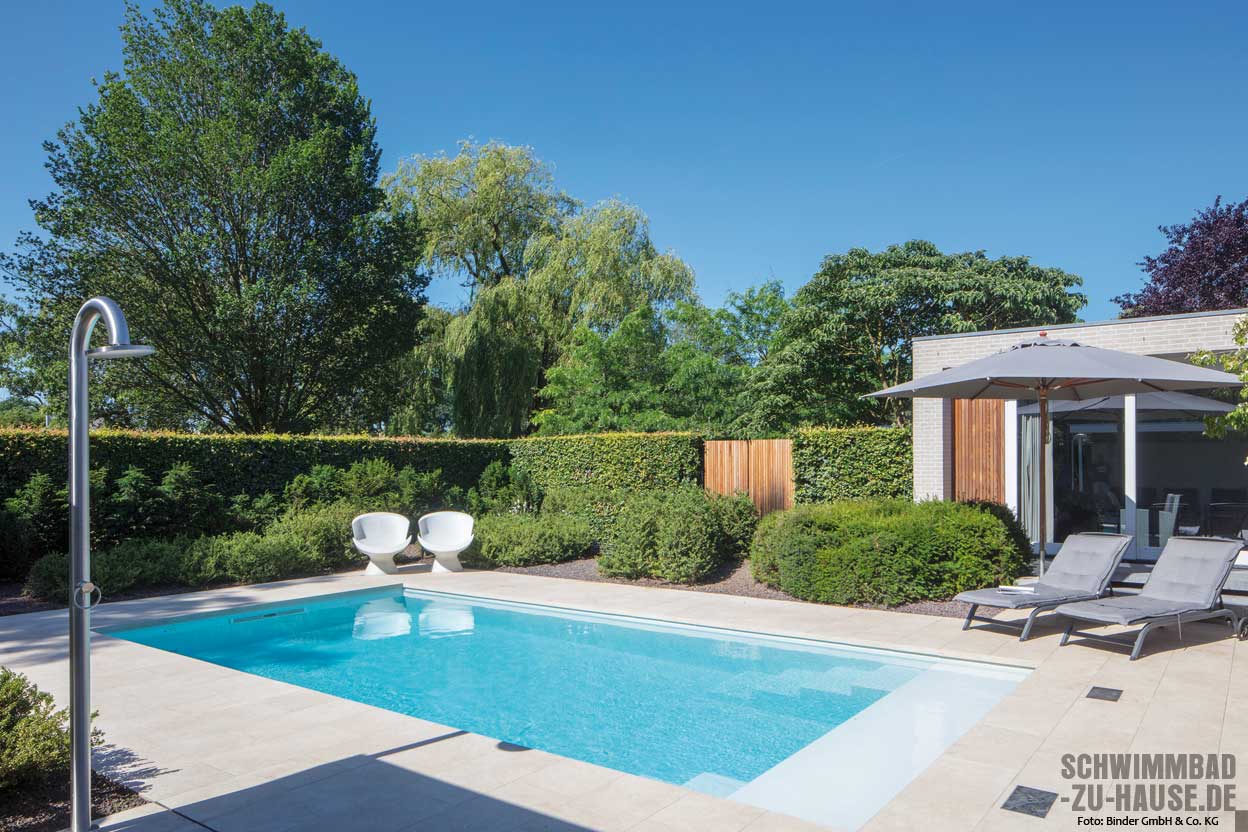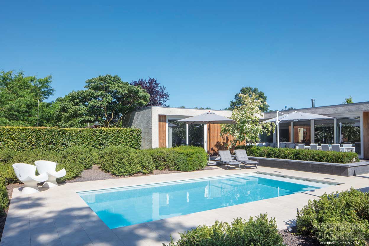 Vom fertig eingerichteten Garten und dem neuen Pool mitsamt hochwertiger Technik ist Familie Roosen äußerst begeistert. „Die Kinder feiern regelmäßig Poolpartys und wir ziehen unsere Bahnen oder genießen die Massage- funktion“, so Frank Roosen abschließend. Er war am Einbau des Beckens selbst maßgeblich beteiligt.