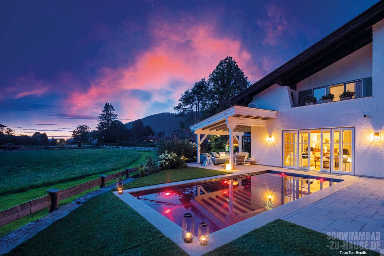 Ein umfassendes Lichtkonzept berücksichtigt nicht nur die Poolbeleuchtung, sondern auch die Umgebung. Die Beleuchtung der Schwimmhalle, des Gartens und der Wege vom Haus zum Pool kann harmonisch integriert werden. Diese ganzheitliche Planung sorgt nicht nur für Sicherheit, sondern verleiht dem Poolbereich auch eine individuelle Note. Leuchtende Möbel, Figuren und LED-Strips können das Ambiente zusätzlich aufwerten.