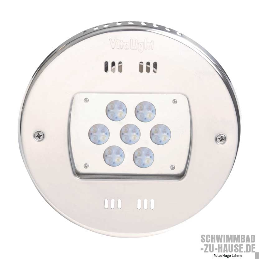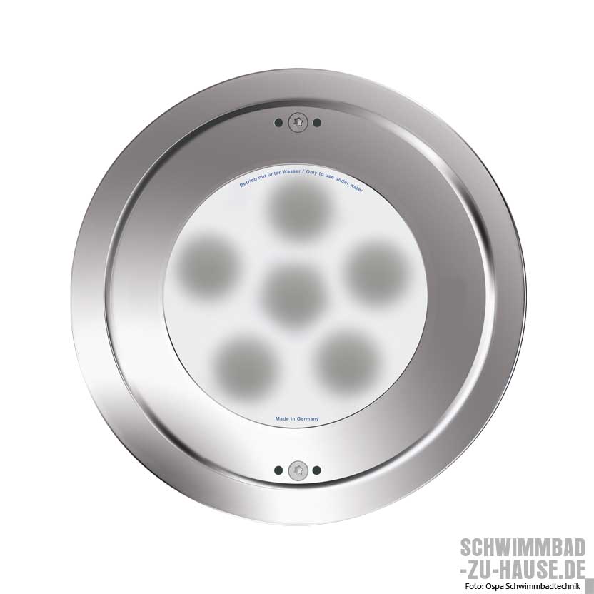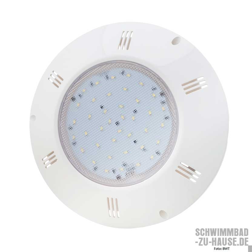 verbaute Lampen sind auch möglich, jedoch mit höherem Aufwand und Kosten verbunden. Heutzutage dominieren LED-Scheinwerfer die Poolbeleuchtung. Sie sind langlebig, wartungsarm, energieeffizient und nachhaltig. LEDs haben eine hohe Leuchtkraft und verbrauchen bis zu 80 Prozent weniger Energie als Halogenlampen. Sie bieten vielfältige Möglichkeiten, Farbe in den Pool zu bringen und sind oft per Smart Home steuerbar. RGBW-LEDs (Rot, Grün, Blau, Weiß) ermöglichen eine breite Palette von Farbtönen und Farbspielen, die für besondere Effekte sorgen.