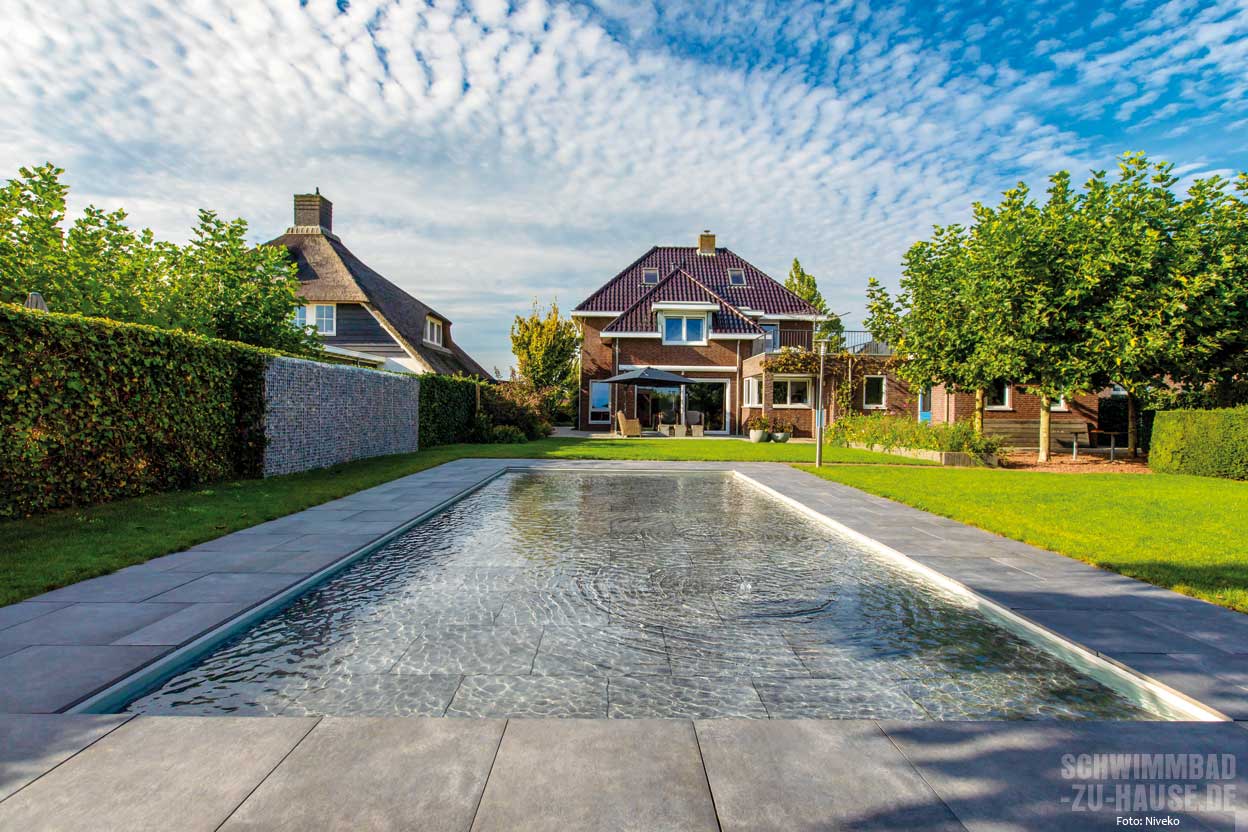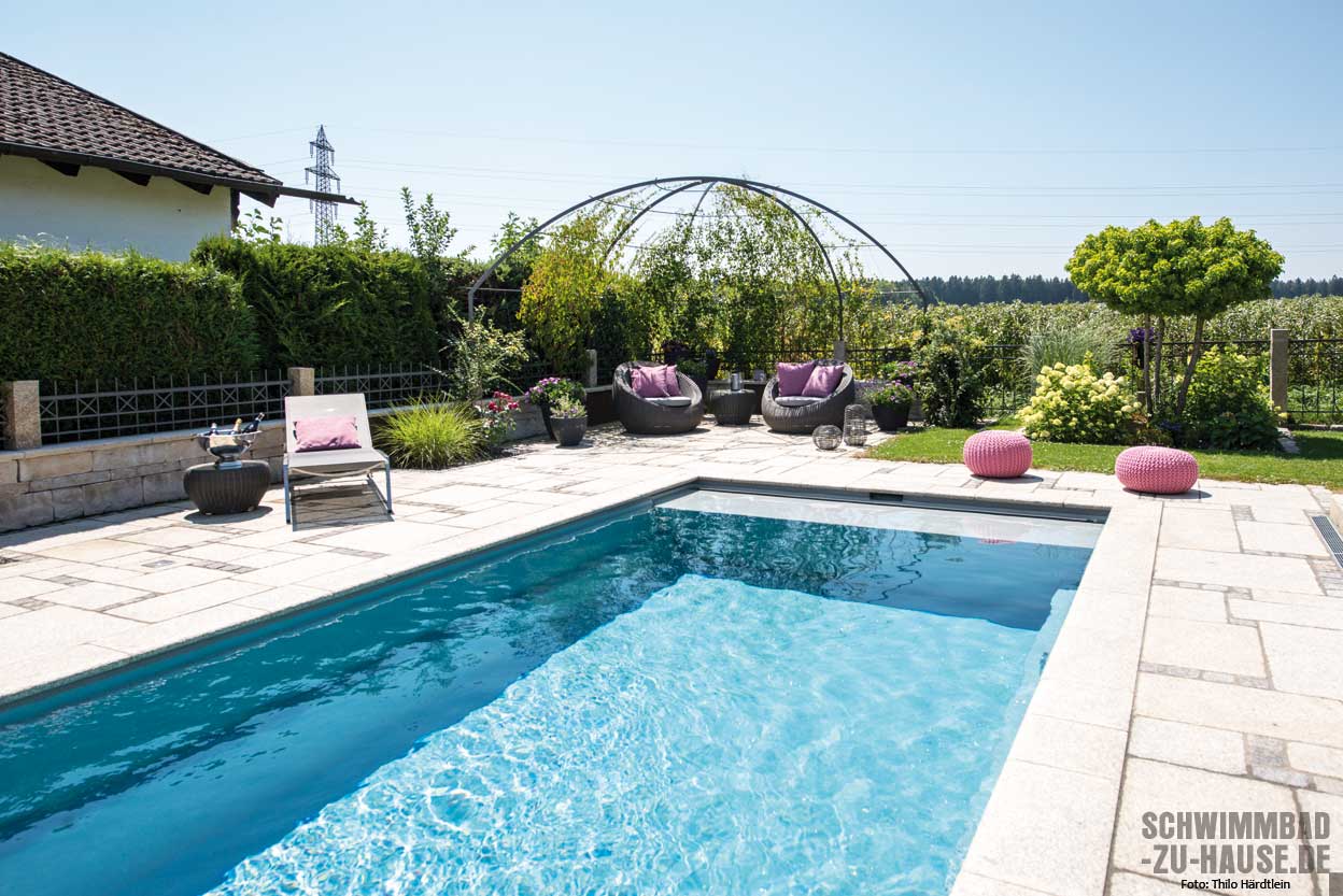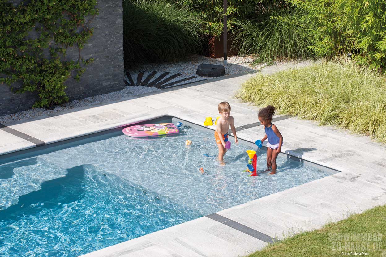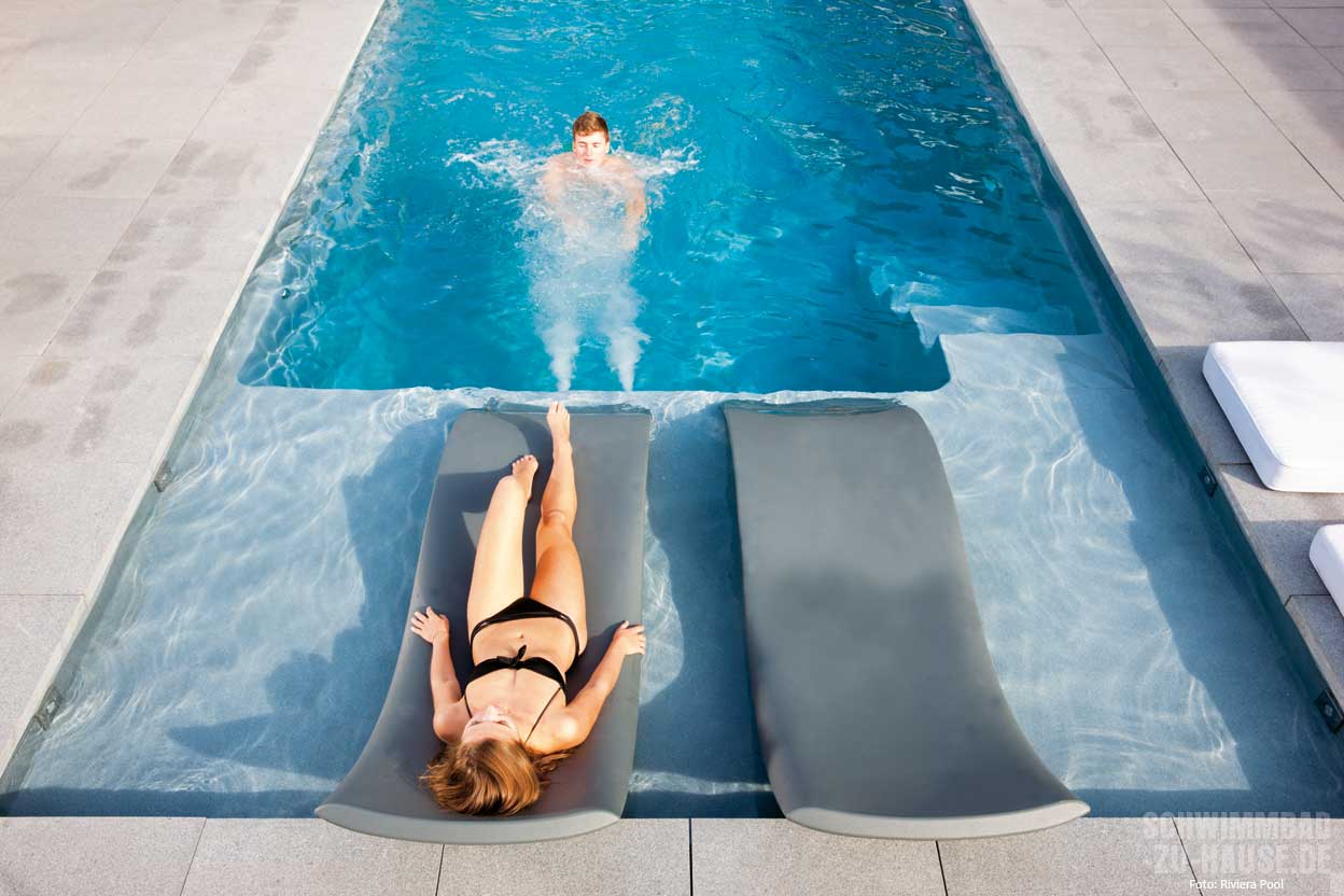 Stellen Sie sich folgendes Szenario vor: Die Sonne scheint mit voller Kraft, es ist Hochsommer, es ist heiß – und es zieht die ganze Familie raus in den Garten mit Pool. Die Kinder möchten im Wasser planschen und Sie haben Freunde zu Besuch, die sich mit einem kühlen Getränk gemütlich ans oder am besten gleich ins Wasser setzen und sonnen möchten. Im tiefen Wasser ist dies nicht besonders ideal. Denn hier müsste man sich stets am Beckenrand festhalten. Und auch für die Kinder stellt das Toben im tiefen Wasser eine Herausforderung dar. Die Lösung: ein Becken mit großzügiger Flachwasserzone. Dies ist praktisch und noch dazu überaus ästhetisch.