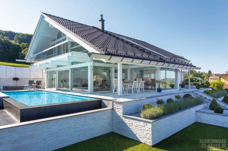 Highlight vieler privater Domizile sind sinnliche Wellness-Features wie Sauna, Whirlpool aber auch der eigene Pool. Denn in der heutigen Zeit, in der Ruhe und Entspannung wegen der Hektik des Alltags immer seltener werden, steigt der Wunsch nach Ausspannen in der Geborgenheit der eigenen vier Wände immens.