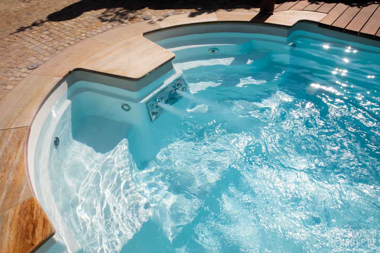 Da die Familie Ihren Urlaub vorzugsweise in der Toskana verbringt und das Haus bereits design- und farbtechnisch an die Urlaubsregion anknüpft, war klar, dass der erträumte Gartenpool ebenfalls diesen Stilvorgaben gerecht werden muss. Es folgte eine zweijährige Planungsphase, während der sich die Bauherren Inspirationen in Fachzeitschriften holten und sich letztendlich für einen Südtiroler Fertigbeckenhersteller entschieden. „Da wir im Großraum Karlsruhe als Partner von Polyfaser gelistet sind, kam der Kontakt zwischen der Familie und uns relativ schnell zustande“, sagt uns beim Interview Ralf Weiß von RS Pools & Spas und ergänzt „Der Wunsch nach einem Fertig-Becken wurde nach dem Besuch in den Werkshallen von Polyfaser verfestigt. Unsere Kunden wussten bereits, dass es das Modell Karibik in der Farbe antiquiert beige sein musste. Auch dass eine Gegenstromanlage von Uwe integriert sein musste, stand zu diesem Zeitpunkt bereits fest“.
