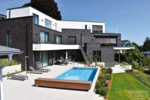 Erst mit 37 Jahren Jahren, als sie schwimmen lernte, entdeckte Hava Yazici-Murtezaoglu ihre große Leidenschaft zum Element Wasser. „Bei der Planung unseres neuen Wohnhauses stand für mich daher von Anfang an fest, dass der neue Garten unbedingt eine Möglichkeit zum Schwimmen bieten sollte“, verrät die Bauherrin aus Aachen im Interview mit haus+wellness*. Dass die als Architektin tätige Bauherrin bei der Gestaltung der Badeoase selbst mitwirken würde, verstand sich von selbst: „Wir wollten sowohl mit den Materialien als auch mit Pflanzen und Accessoires eine mediterrane Stimmung erzeugen. Gleichzeitig sollte das Schwimmbecken architektonisch zum modernen Charakter des Wohnhauses passen“, so die dreifache Mutter. Bei der Recherche im Internet und auf den Hinweis eines Bekannten hin stieß die Familie auf die erfahrenen Experten von Köppen Schwimmbadtechnik, sodass Planung und Umsetzung des Pool-Projekts konkret beginnen konnten.