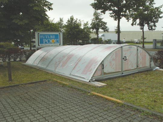 Das schlechte Wetter der diesjährigen Badesaison hat so manchem den Badespaß im Freien vermiest. Besitzer einer Schwimmbadüberdachung dagegen waren fein raus – sie konnten ihren Pool auch an den Regentagen problemlos nutzen. Dass die Anschaffung einer Schwimmbadüberdachung nicht übermäßig teuer sein muss, zeigt das Beispiel des Selbstbausatzes mit dem treffenden Namen „Do it“ (von Future Pool). Die in drei Größen erhältliche Schiebeüberdachung wird – gut verpackt in mehreren Kartons – von einer Spedition direkt vor Ort angeliefert. Neben den einzelnen Bauteilen der Überdachung ist auch das für den Aufbau benötigte Werkzeug mit an Bord. So muss lediglich eine Bohrmaschine für die Befestigung der Bodenlaufschienen im Streifenfundament griffbereit sein.