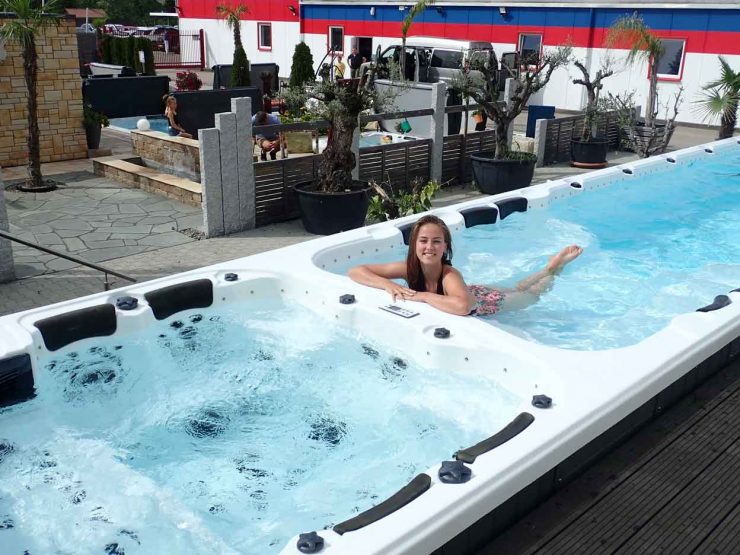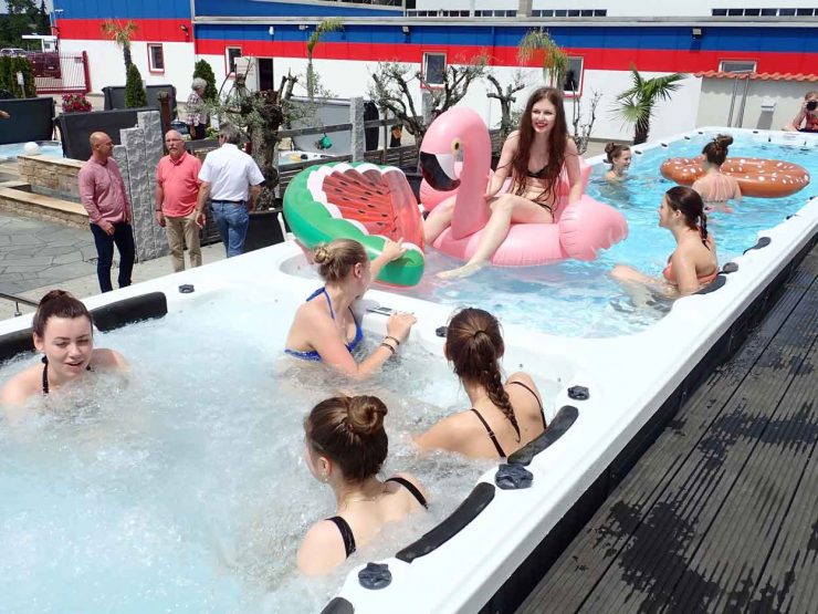 Vor allem die bis zu elf Meter langen Swim-Spas beeindruckten die Besucher mit ihren vielfältigen Möglichkeiten: Aquagymnastik, Wasserübungen, Schwimmtraining und Erholung – hier ist alles möglich. Eine neue Dimension von Aquafitness präsentierte Martin Oberloher von SportpoolTV: Ein Sport- und Fitnessprogramm mit individuellen Trainingseinheiten unter Anleitung professioneller Instruktoren, das den eigenen Pool in einen Jungbrunnen verwandelt.