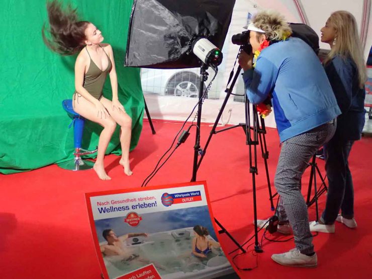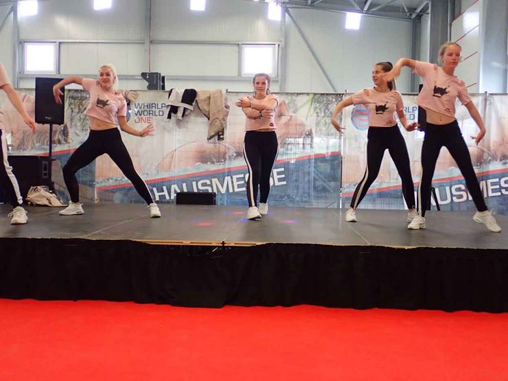 Sportlich ging es auch in der 1100 Quadratmeter großen Eventhalle zu, wo zwei Tanzgruppen von „Bliems Bunte Bühne“ mit Hip-Hop und Musical Dance begeisterten. Dabei sorgten die Mädels nicht nur auf dem Tanzparkett für Action, sondern auch beim spontanen Bad im größten Swim-Spa der Freilandausstellung von Whirlpools World. Dank einer überdimensionalen, sechs mal neun Meter großen Leinwand kamen die Fußballfans unter den Besuchern ebenfalls auf ihre Kosten.