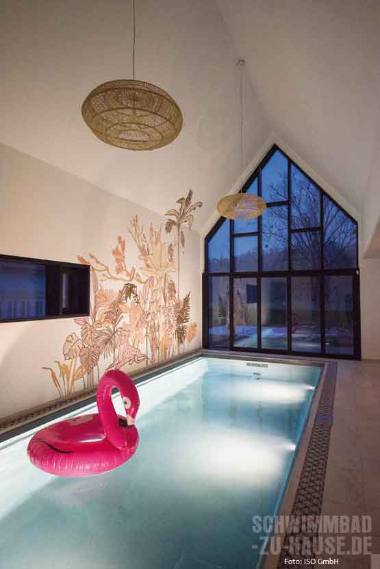 Die Basis aller Überlegungen sind die gesetzlichen Vorgaben. Beim Neubau eines Wohnhauses greift die Energieeinspar-Verordnung (EnEV), die den Wärmeschutz regelt. Dieser besteht üblicherweise aus einer hochdämmenden Tragkonstruktion und einer entsprechenden Außenwärmedämmung. In der EnEV wird allerdings auch ein Indoorpool wie ein normaler Wohnraum behandelt, obwohl hier ganz andere klimatische Bedingungen herrschen. So hat der Bereich der Schwimmhalle ganzjährig eine um circa zehn Grad höhere Raumtemperatur und verursacht dadurch höhere Wärmeverluste. Um dem entgegenzuwirken, werden Außenwände und Decken einer Schwimmhalle zusätzlich mit einer innenliegenden Wärmedämmung versehen, welche die sogenannten Trans-
