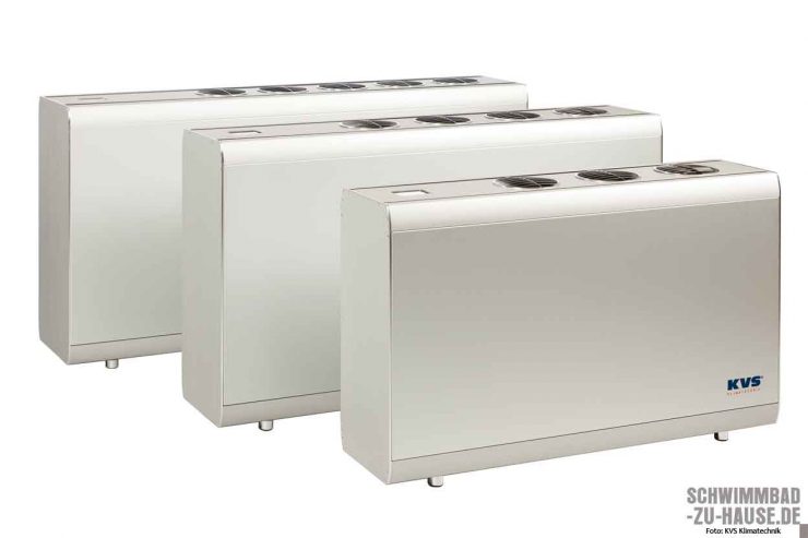 Neben der Dampfsperre empfehlen sich zudem spezielle Klimageräte, die überschüssige Feuchte abführen. Bei der Auswahl des passenden Geräts sollten Faktoren wie Größe der Wasseroberfläche, der Einsatz einer Poolabdeckung und die Häufigkeit der Benutzung eine Rolle spielen. Um auf unterschiedliche Anforderungen reagieren zu können, sind auf dem Markt verschiedene Klimageräte erhältlich: freistehende Entfeuchtungsgeräte, Kanalgeräte, an die Wand oder Decke montierte Geräte, Truhengeräte, in den Technikraum integrierte Geräte, Hinterwandgeräte oder Wärmetauscher, die an die Haustechnik gekoppelt sind. Übrigens: Obwohl die meisten Klimageräte auch heizen, sollte zusätzlich eine Fußbodenheizung im Wellnessbereich eingeplant werden. Sie sorgt für eine Extraportion Behaglichkeit.