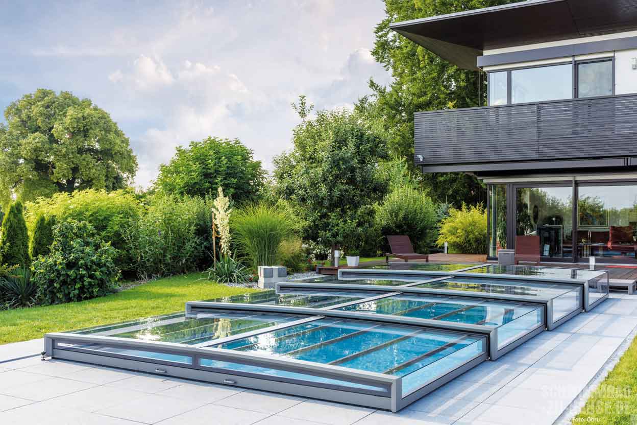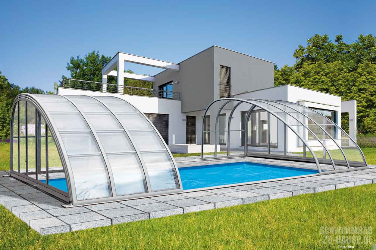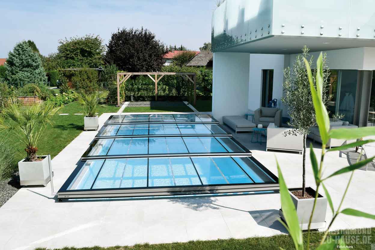 Im Gegensatz zu früher müssen sich Poolüberdachungen auch gar nicht mehr verstecken. Heute erhalten Sie schicke Überdachungen in verschiedensten Ausführungen. So haben Sie eine breite Auswahl, um die Lösung zu finden, die Ihren Designwünschen entspricht und optimal zu Ihrer Gartenarchitektur passt. Wie sie sich öffnen und schließen lassen, ist bei vielen Überdachungen ähnlich: Sie werden teleskopisch ineinandergefahren. Das bedeutet, die Poolüberdachung besteht aus einzelnen Segmenten, die beim Öffnen des Pools wie bei einem Teleskop ineinandergeschoben werden. Abnehmbare oder als Ganzes verschiebbare Überdachungen kommen dagegen eher selten zum Einsatz.