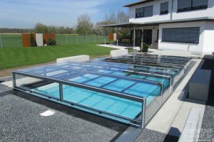 Öffnen und schließen lassen sich viele der Poolüberdachung von Hand. Es existiert aber auch die Möglichkeiten einen Motor zu verwenden, der sich bei besonders großen Überdachungen anbietet.