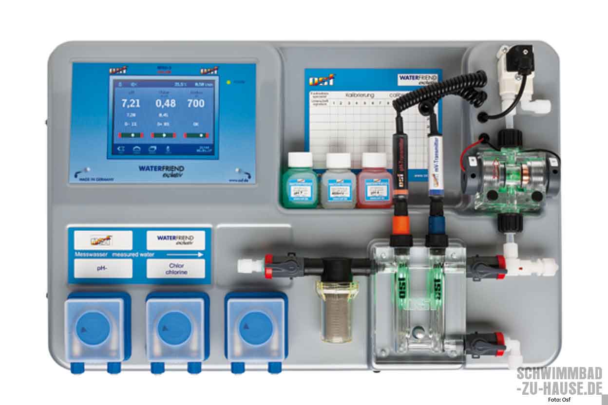 Damit das Beckenwasser zu jeder Zeit richtig „eingestellt“ ist, haben die Hersteller spezielle automatische Anlagen entwickelt, die zuverlässig Wasseraufbereitungsmittel dosieren. Dies erleichtert die Dosierung erheblich. Die meisten Anlagen basieren auf der elektrochemischen Erfassung der Hygienehilfsparameter Redox Potenzial und pH-Wert, mittels Elektroden. In Abhängigkeit von der Belastung des Wassers, in erster Linie verursacht durch die Anzahl der Benutzer, wird Chlor und ein pH-Wert-regulierendes Mittel (pH-Wert-Heber oder -Senker) in der richtigen Menge dosiert. Die Anlagen arbeiten aber nicht dauerhaft wartungsfrei, da die Elektroden einer natürlichen Alterung unterliegen und eine begrenzte Lebensdauer haben. Es ist daher ratsam, den Benutzer gründlich in die Handhabung hinsichtlich der Kalibrierung und Wartung einzuweisen oder alternativ einen Servicevertrag abzuschließen.