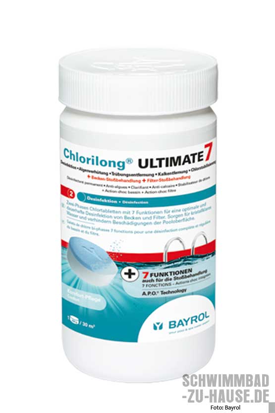 Das Chlorgranulat ist ein stabilisiertes, kalkfreies und hochkonzentriertes Granulat zur Zusatz? und Dauerchlorung mit 56-prozentigem aktivem Chloranteil. Es ist nahezu unbegrenzt lagerfähig. Die besondere Stabilisierung verringert den Verlust von ungenutztem Chlor. Anwendung: Das Granulat in den Skimmer geben oder vorher in Wasser auflösen. Nicht direkt ins Becken einstreuen! Zugabe während der Umwälzzeit, damit sich das Mittel im Becken verteilt.