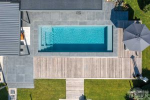 Doch so schön dieser Ort ist, er brachte einige Herausforderungen mit sich. So musste das Becken „Modena 975 / 370“ von Riviera Pool mit einem Kran über mehrere Grundstücke hinweggehievt werden, um an seinen Platz zu gelangen. Der Grundwasserspiegel durch den angrenzenden See erwies sich ebenfalls als problematisch, weshalb die Realisierung mit einer „Weißen Wanne“ erfolgte. Bei dieser Bauweise bilden Bodenplatte und Außenwände eine abdichtende Einheit aus wasserundurchlässigem Beton. „Derartig anspruchsvolle Projekte lassen sich nur mit viel Erfahrung und einer sauberen Planung umsetzen. Dabei haben uns die Bauherren ihr vollstes Vertrauen geschenkt“, berichtet Dennis Schikora.