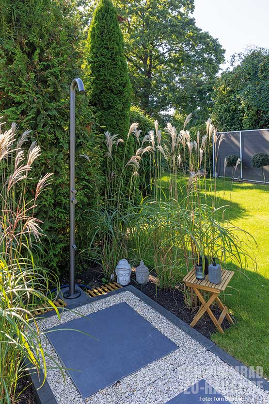 Doch so schön dieser Ort ist, er brachte einige Herausforderungen mit sich. So musste das Becken „Modena 975 / 370“ von Riviera Pool mit einem Kran über mehrere Grundstücke hinweggehievt werden, um an seinen Platz zu gelangen. Der Grundwasserspiegel durch den angrenzenden See erwies sich ebenfalls als problematisch, weshalb die Realisierung mit einer „Weißen Wanne“ erfolgte. Bei dieser Bauweise bilden Bodenplatte und Außenwände eine abdichtende Einheit aus wasserundurchlässigem Beton. „Derartig anspruchsvolle Projekte lassen sich nur mit viel Erfahrung und einer sauberen Planung umsetzen. Dabei haben uns die Bauherren ihr vollstes Vertrauen geschenkt“, berichtet Dennis Schikora.