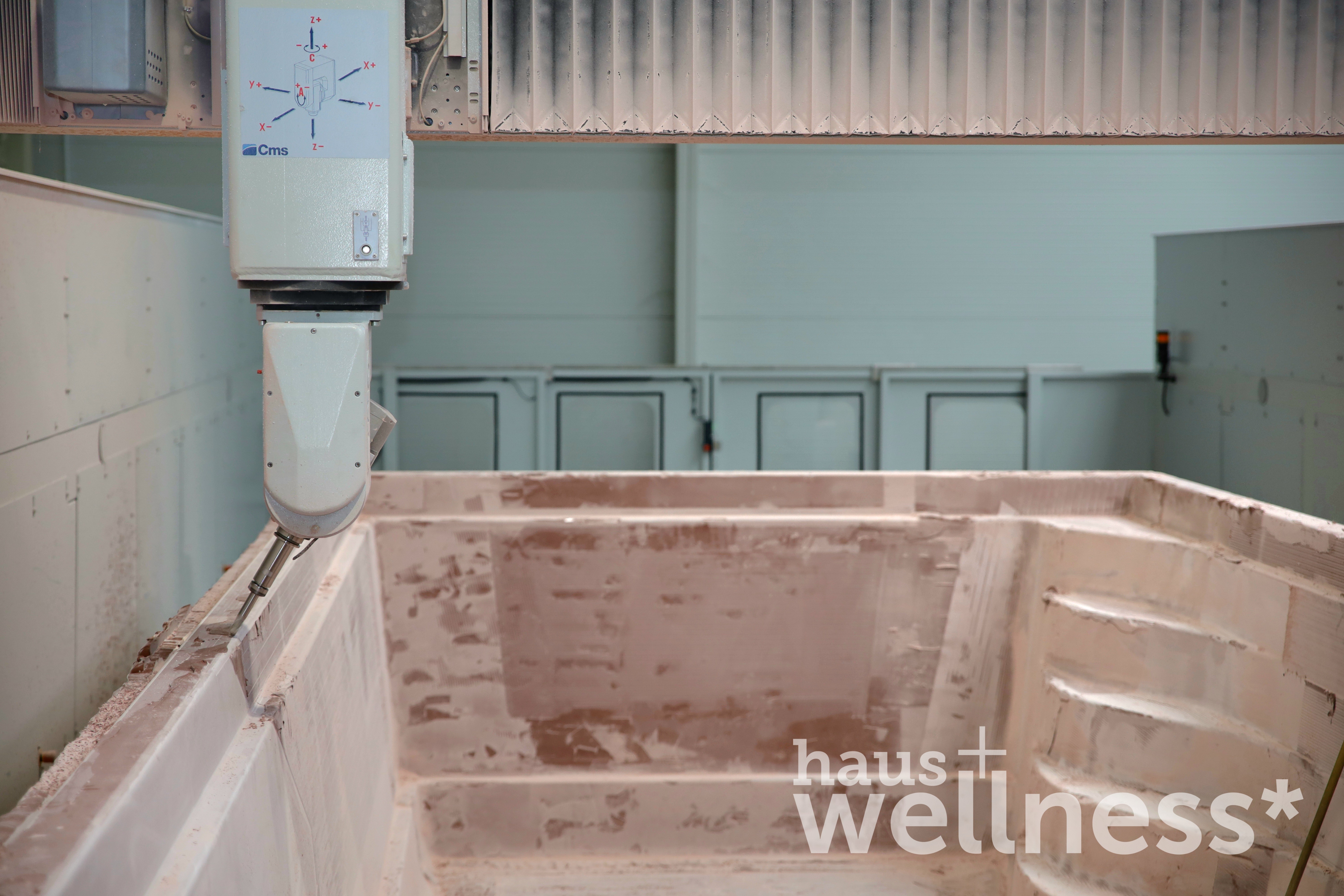 „Unsere hochmoderne CNC-Fräsmaschine ermöglicht es uns, die Beckenformen direkt vor Ort zu fertigen. Das gibt uns volle Kontrolle über die Qualität und Flexibilität in der Produktion.“ – erklärt ein WaterRows-Vertreter.