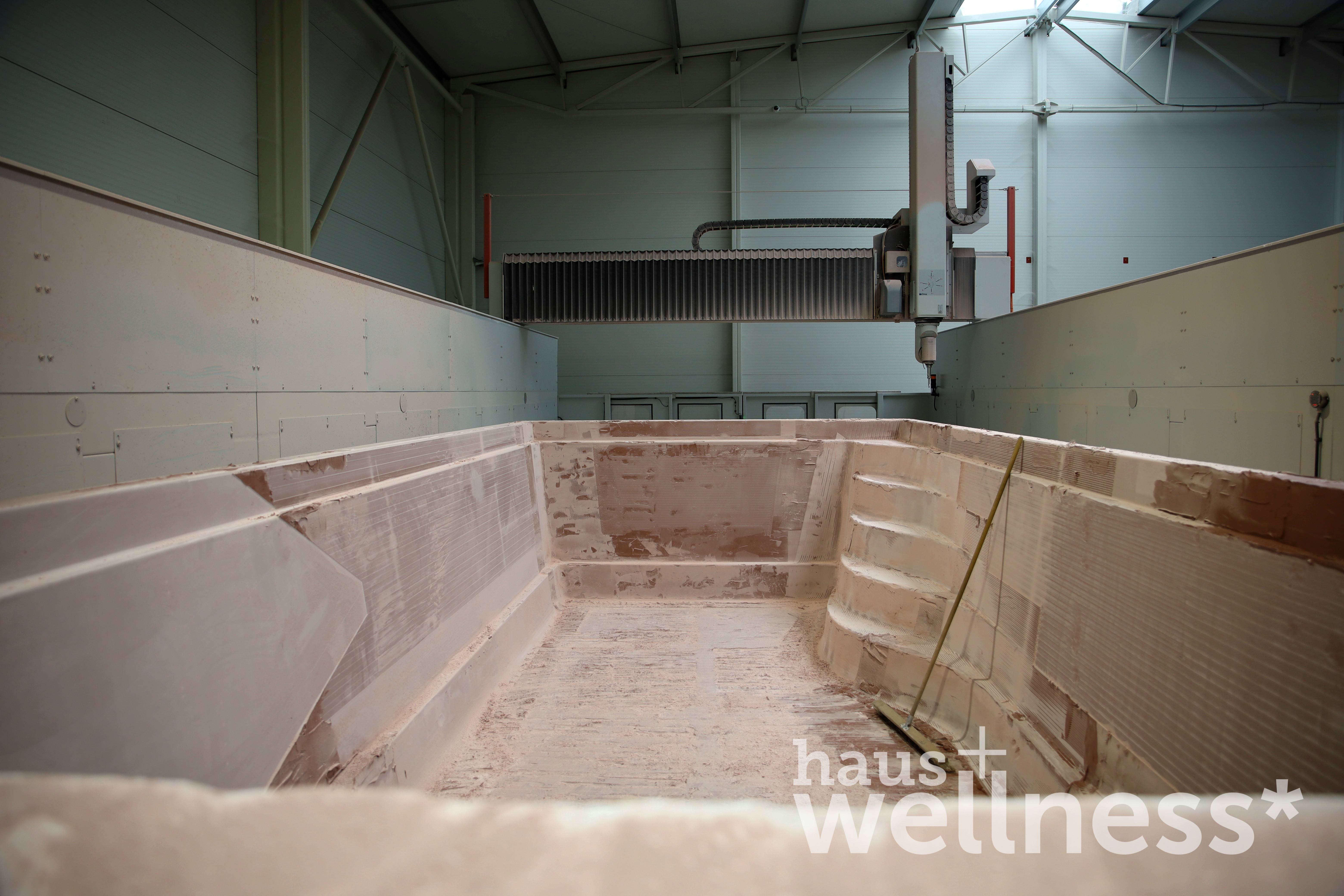 Ein entscheidender Faktor für die Qualität der WaterRows-Pools ist die Herstellung der Beckenformen. Diese werden mit einer hochpräzisen CNC-Fräsmaschine der neuesten Generation gefertigt.