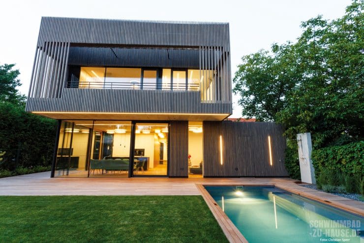 Dass es möglich ist, auch auf kleinem Raum eine traumhafte Wellnessoase zu schaffen, beweist dieses Objekt. Das Haus D ist nicht nur ein Architekturhaus par excellence, es ist auch ein Beispiel dafür, wie man auf wenig Platz einen modernen Rückzugsort realisieren kann. Die glückliche Familie kann heute im eigenen Garten nicht nur privaten Badespaß im modernen Folienbecken genießen, sondern sich dabei auch noch an einem architektonischen Statement erfreuen. Denn das Haus ist ein echter Hingucker.