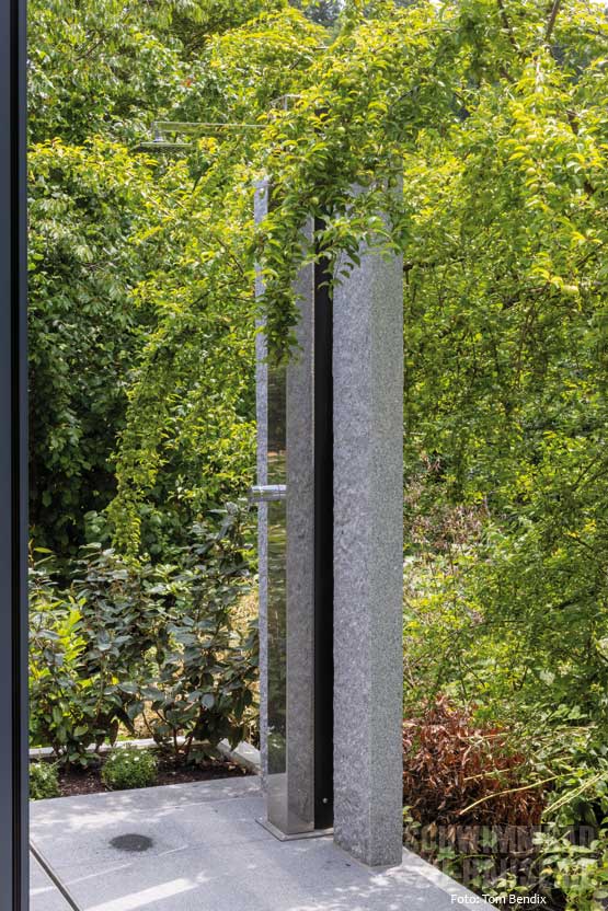 Der Duschbereich mitten im Grünen bietet eine naturnahe Erfrischungsmöglichkeit und ein einzigartiges Badeerlebnis.