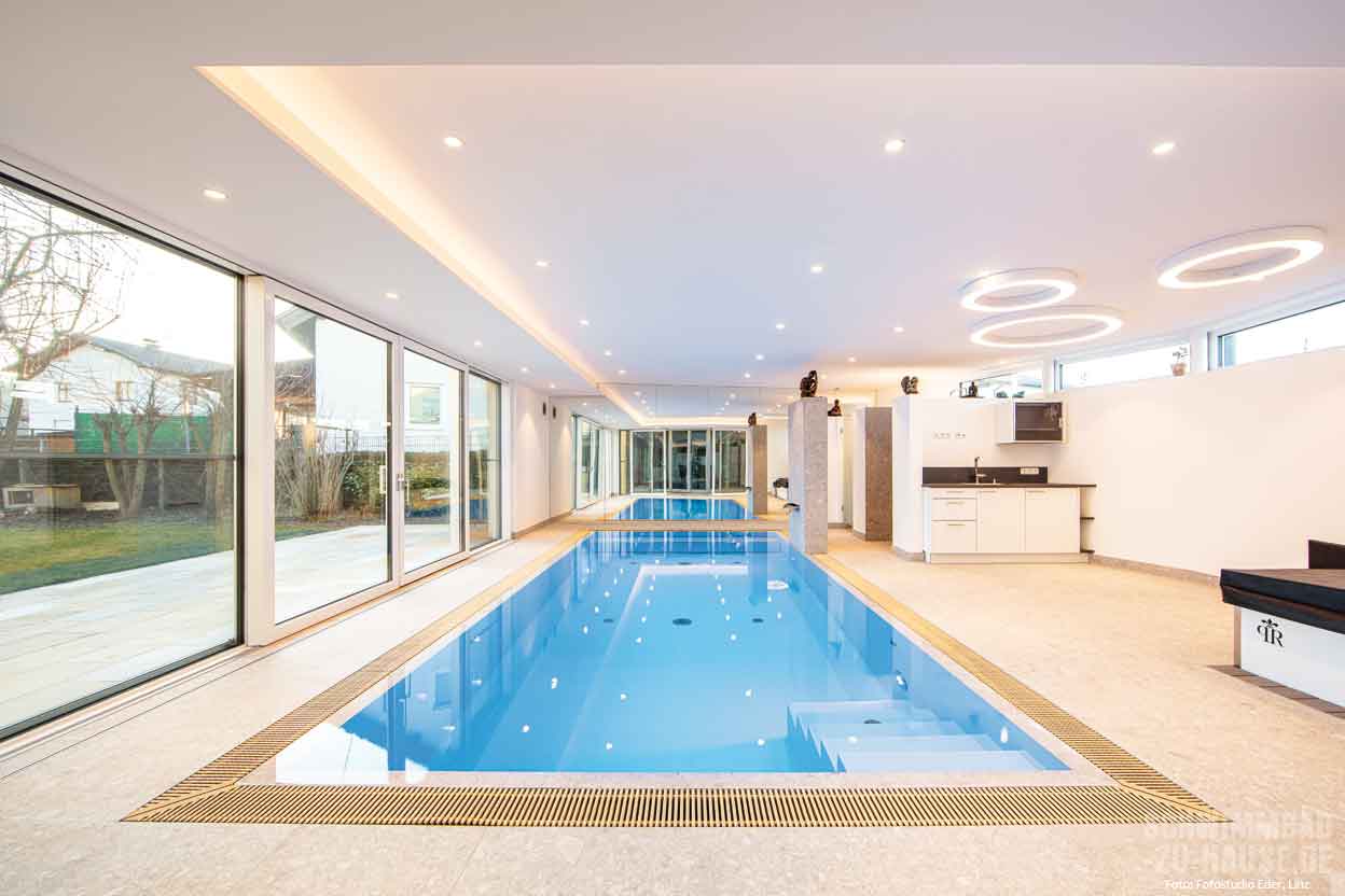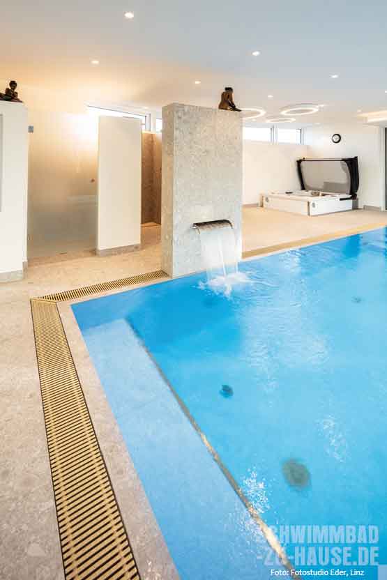 Im oberösterreichischen Mühlviertel – so sagt man – ticken die Uhren etwas langsamer, damit mehr Zeit zum Leben und Genießen bleibt. Nach dieser Maxime haben auch die Hausherren gehandelt, als sie sich ihren Traum von einem kleinen, aber feinen Hallenbad samt Whirlpool erfüllten. Die weitestgehend automatisierte Schwimmbadtechnik ermöglicht der Familie sorglose Entspannung ohne viel Aufwand für die Wasserpflege.