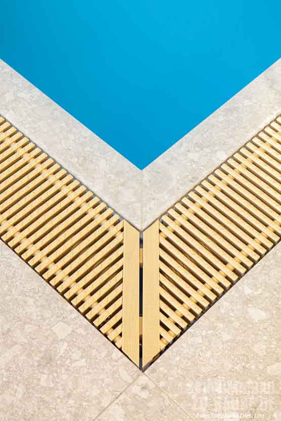 „Ich hatte mich sehr auf dieses Projekt gefreut, da der Pool das zentrale Objekt war und sich das Gebäude samt Technikbereich um diesen herum entwickelte“, erinnert sich Delfin-Geschäftsführer Martin Mittermayr an die Aufgabe. Für ihn ist es essenziell, dass der Schwimmbadbauer gleich von Anfang an in die Planung einbezogen wird. Die besondere Herausforderung bestand in der nahtlosen Anbindung des neuen Wellnessbereichs an das Bestandsgebäude. Die schwierige Liefersituation, die alle Gewerke betraf, erforderte zudem eine genaue Abstimmung.