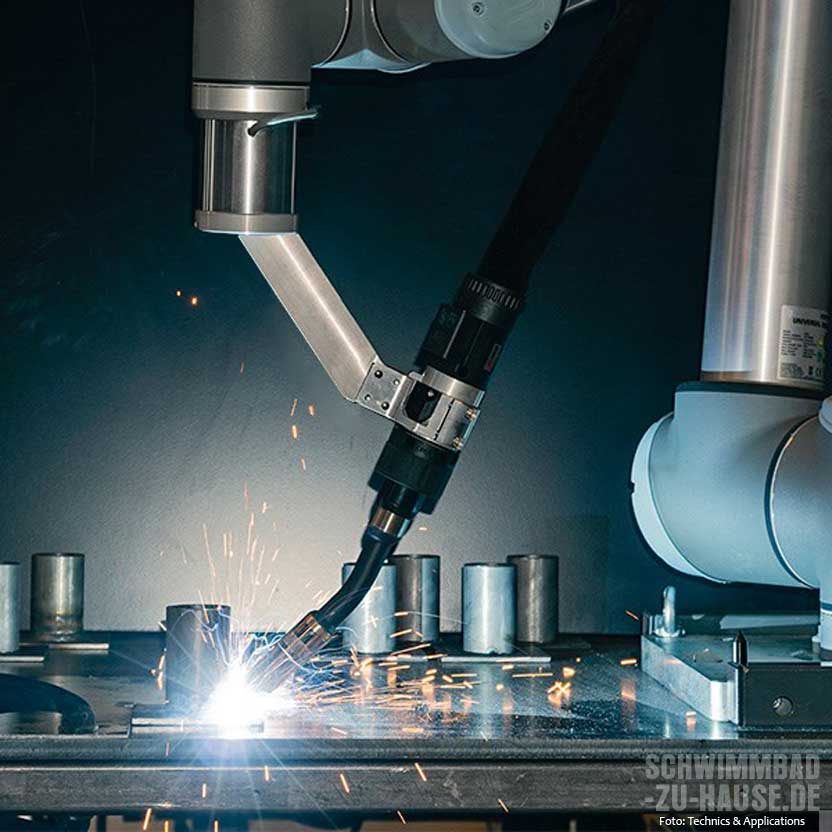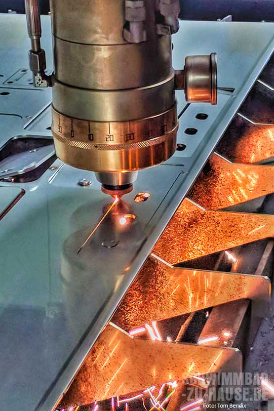 In der Produktionsstätte in Aarschot werden die Teile gelasert, gebogen und geschweißt. Auch dies geschieht weitgehend automatisch, unter anderem mit einer Laserbank und einem automatischen Schweißroboter. Der Standort Aarschot verfügt bereits über mehr als 20 Jahre Erfahrung im Schweißen von Edelstahlteilen. Darüber hinaus werden an diesem Standort auch Steuerkasten für die Automatisierung von Schwimmbädern hergestellt.
