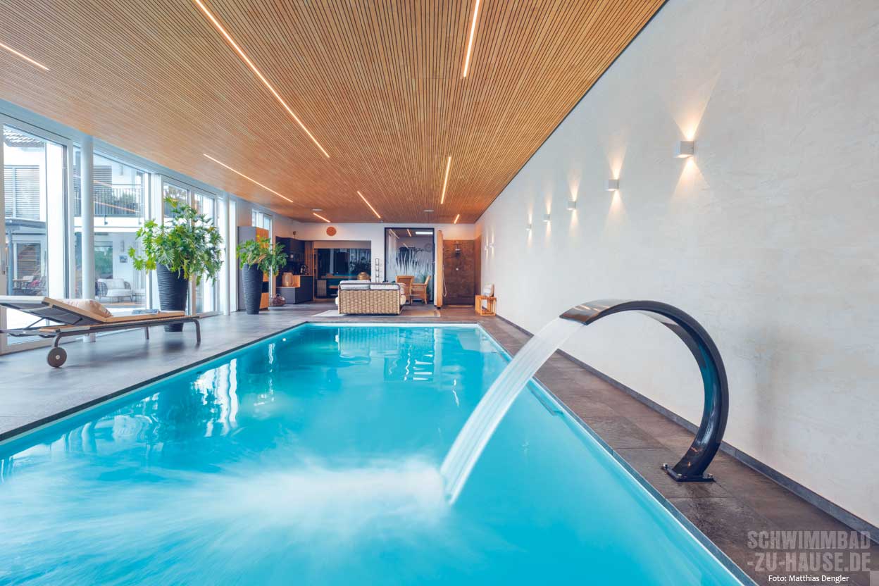 Mit einer ansprechenden Innengestaltung, einem versierten Schwimmbadbauer und einem Architekten, der Erfahrung mit Gebäudeanbauten hat, kann eine Schwimmhalle wie ein natürlicher Teil des Hauses wirken. Ein Objekt im Landkreis Freudenstadt zeigt, wie sich wohnlicher Schwimmbad-Chic mit moderner, energieeffizienter Technik und jeder Menge Badespaß vereinen lässt.