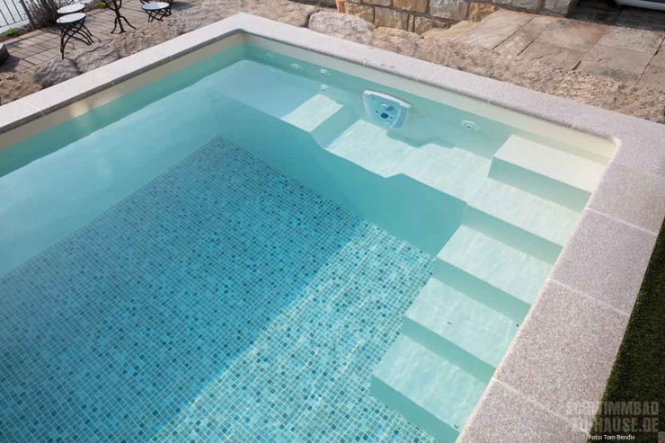 Mit diesen Vorstellungen im Gepäck vereinbarten Kerstin und Andreas Scheibe einen Termin bei der auf den Bau von Schwimmbädern spezialisierte Firma Heide in Dresden. Nach der kompetenten Beratung vor Ort und der Finalisierung der Pläne war schnell klar: Die Chemie stimmt. Die Wünsche des Paares können umgesetzt werden. Der Installation des neuen Pool steht somit nichts im Wege! „Die Aufgabe, ein individuelles Poolprojekt für Familie Scheibe zu planen und umzusetzen war überaus spannend“, erinnert sich Bill Heide. „Schwimmen, Massage und wohl temperiertes Wasser standen hierbei ganz oben auf der Wunschliste der Bauherren“, so Heide im Interview. Die Herausforderung für den Schwimmbadprofi und sein erfahrenes Team bestand in den räumlichen Vorgaben des Grundstücks. Auf engstem Raum sollte hier ein kompaktes Becken mit Treppe, Massageanlage und Gegenstromanlage Platz finden, ohne dass ein Gefühl von Enge entsteht. Da der Garten schwer zugänglich ist, war für die Anlieferung des Beckens und Co. großes handwerkliches Geschick notwendig. Mit viel Erfahrung und fachlichem Know-how entstand so ein Wellnessgarten mit einzigartigem Flair, dessen Zentrum ohne Frage der Pool bildet.