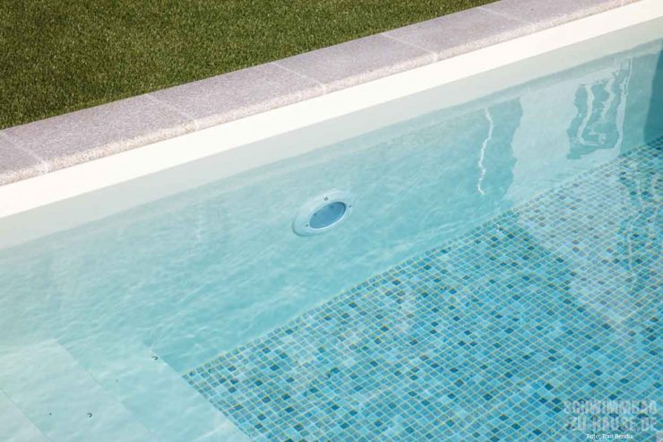 Auch technisch hat das Projekt einiges zu bieten: „Besonders wichtig war es dem Paar, dass sowohl sportliches Schwimmen als auch Hydromassage im Pool möglich ist“, fasst Bill Heide zusammen. Mit der leistungsstarken Gegenstromanlage von Speck Pumpen, die man nach Lust und Laune einfach auf die Funktion Massage umschalten kann, ist Familie Scheibe mehr als zufrieden. Für stets kristallklares warmes Wasser sorgt eine zuverlässige Filteranlage, die wie Scheinwerfer, Pumpen, Heizung und Co. über eine automatische Poolsteuerung bedient wird. So müssen Kerstin und Andreas Scheibe wenig Zeit für die Wasseraufbereitung aufwenden.