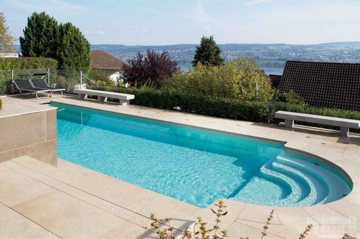 Wenn die Familie nun nach einem ereignisreichen Tag nachmittags nach Hause kommt, heißt es als Erstes: Ab in den Pool! Während die Kinder weiter im Wasser toben, genießt das Paar in der warmen Abendsonne auf den gemütlichen Sonnenliegen ein Glas Wein und lässt den Tag in der eigenen Wohlfühloase mit Blick auf den Zürichsee gemütlich ausklingen. Einfach zum niederknien …