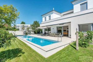 Heute erfreuen sich die Hausbesitzer an einem stattlichen Pool mit sportlicher Note, der fast das ganze Jahr hindurch genutzt wird. Auch für die erwachsenen Kinder ist er ein Highlight im Elternhaus, wo man im und am Wasser gemeinsam Zeit miteinander verbringen kann.