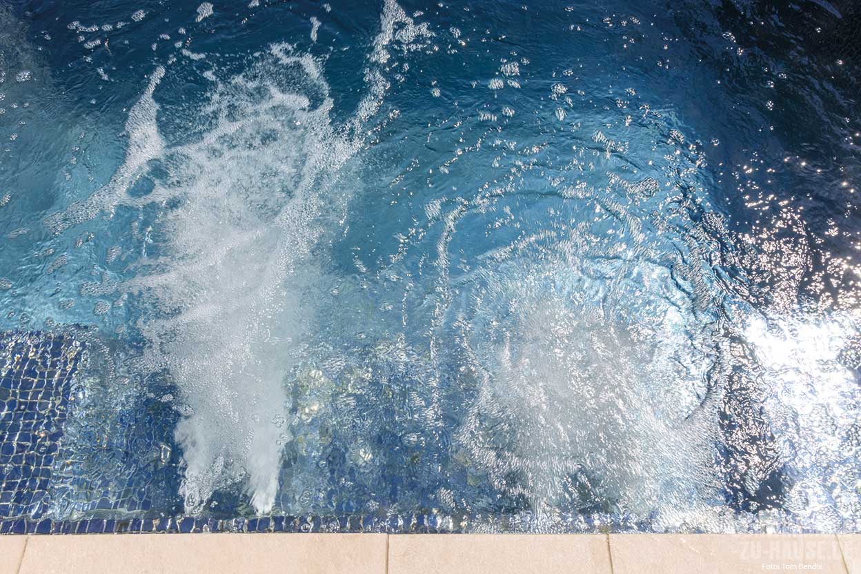 Für die technische Ausstattung wurde auf die Expertise von Ospa gesetzt. Eine vollautomatische Filter- und Dosieranlage, moderne Pumpentechnik und eine intuitive Steuerung halten den Pflegeaufwand gering. Ergänzt wird das System durch eine energiesparende Heizlösung von HKR. Die laufenden Kosten bleiben überschaubar. Der wöchentliche Pflegeaufwand liegt bei unter einer Stunde.